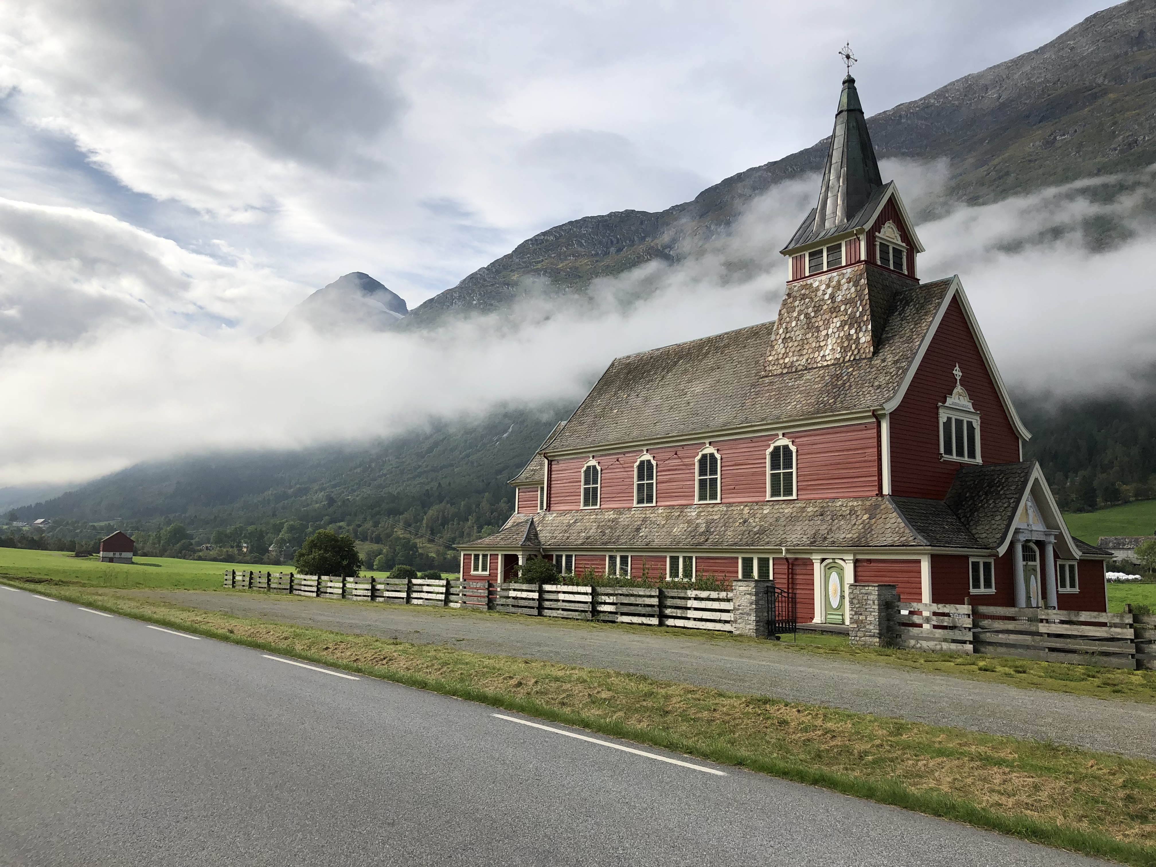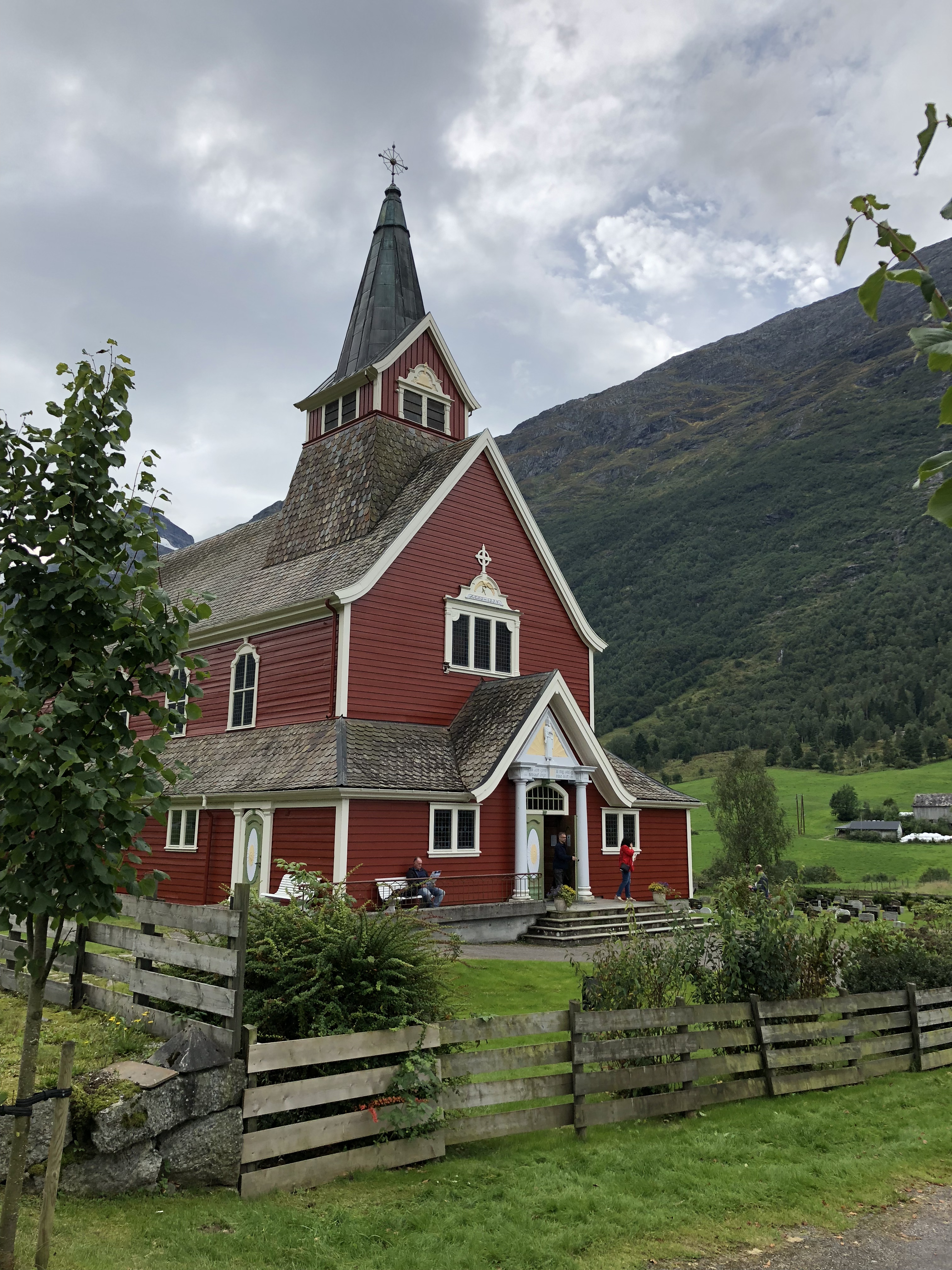 Upon leaving the ship, I turn to the right and walk into the main town of Olden, then after the local high school I turn left and head up the road towards the beautiful Olden Church. I then continue up the road pausing regularly to take numerous photographs. If you do not enjoy walking, or have difficulties then there is a road train, that picks up where your ship docks and drives the same route as my walk.