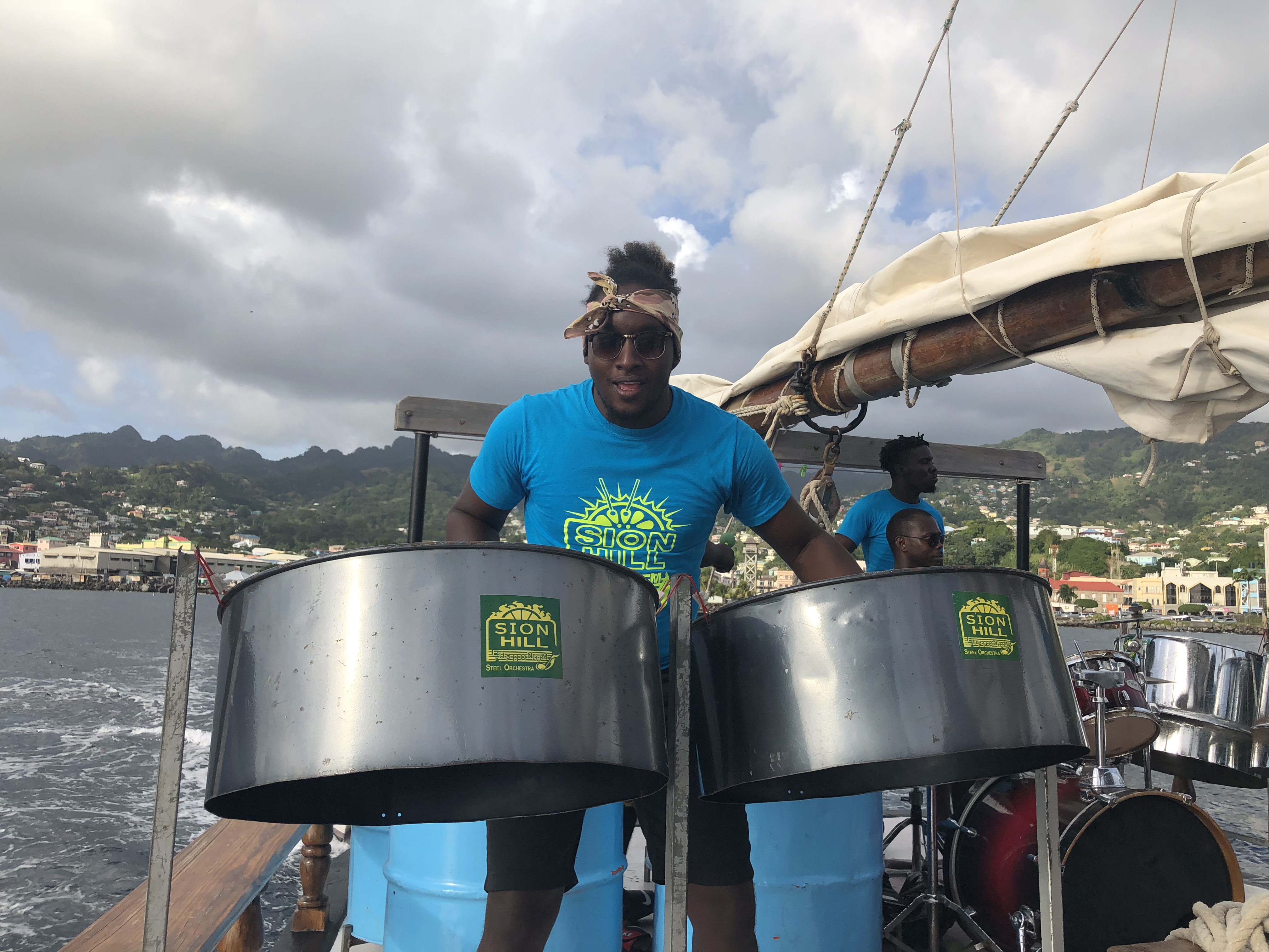 We then sailed on to St Vincent. In St Vincent we always tend to go on a particular trip. It’s a bit of a guilty pleasure… a trip on the St Vincent Schooner…. As someone who doesn’t drink much at all, they’re very generous with the rum punch… it is however a trip were everyone is incredibly cheerful and happy by the end, which is lovely when you’re hearing the stereotypical moans around ship. There are opportunities to see pirates of the Caribbean sights and to have a swim, prior to the rum punch flowing. I also enjoyed diving off the side of the boat into the sea with the crew and on board Sion Hill Steele band members. Great fun!