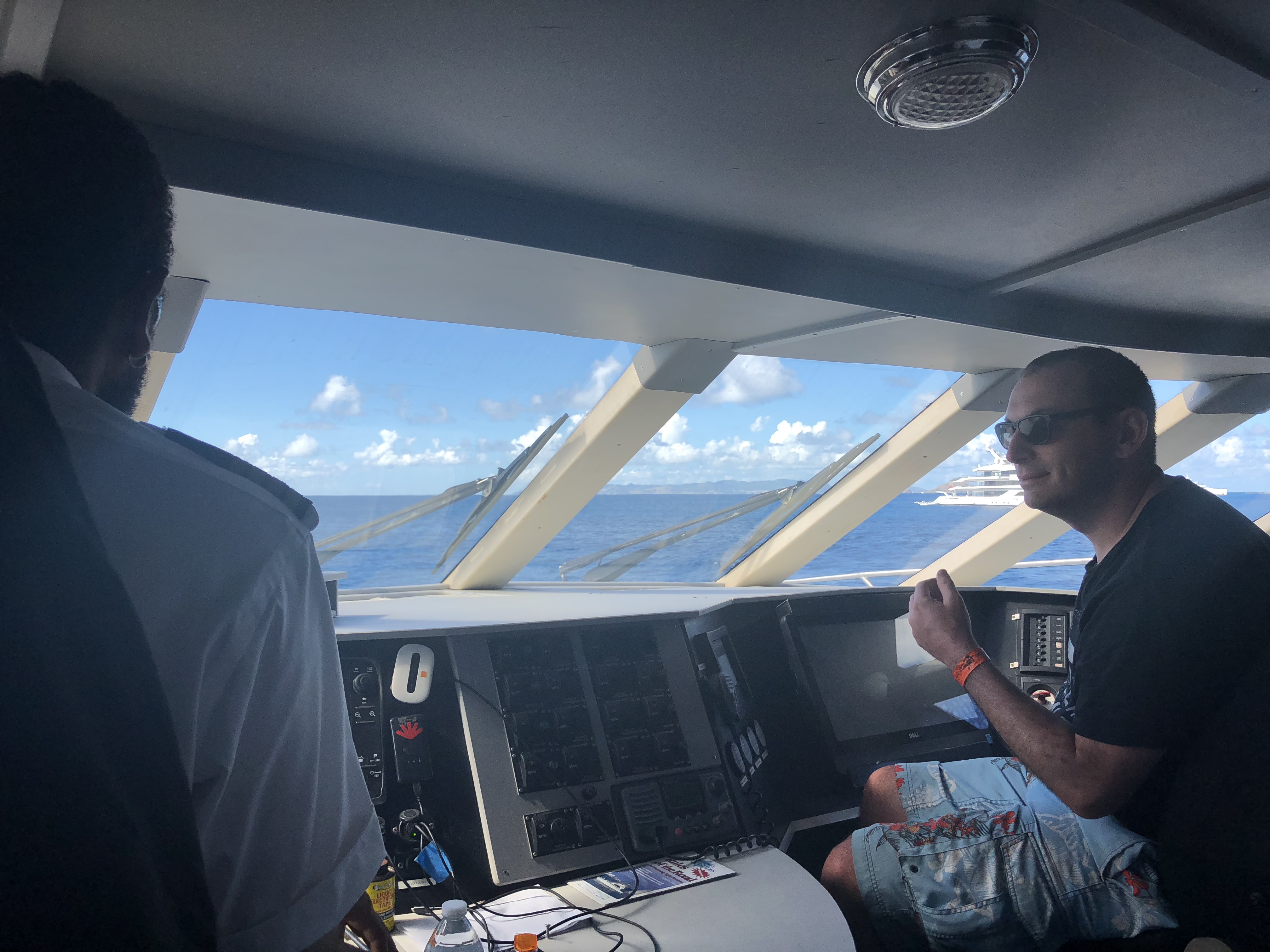 We then reboarded Britannia and cruised on to St Martin. We love St Martin, another annual visit, usually we can be found on a catamaran trip, or watching the planes at Maho beach. This year, I wanted to visit St Barths. It was a Monday morning , usually I head to St Barts in London for meetings, heading to St Barts in the Caribbean was far more fun… again a trip organised by P&O. A ferry was chartered for the group of us, so there was plenty of free space. The journey over was a little choppy, but having never been affected by seasickness it was an immensely fun journey! We arrived in St Barts and went on a short cab tour of the island with some fellow passengers. They returned to town and walked to a local beach for the rest of the day. We returned to town for some French crepes then had a nose around the posh shops prior to the short ferry ride back. My husband was over the moon on the way back when the captain invited him to sit on the ‘deputy captain’ seat on the Bridge, there he stayed for the whole journey back!