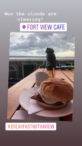 We walked down towards St Aubins and had a pit stop for some breakfast looking out over the gorgeous St Aubins Bay. The heavens briefly opened, but lucky normal sunshine service resumed soon after!