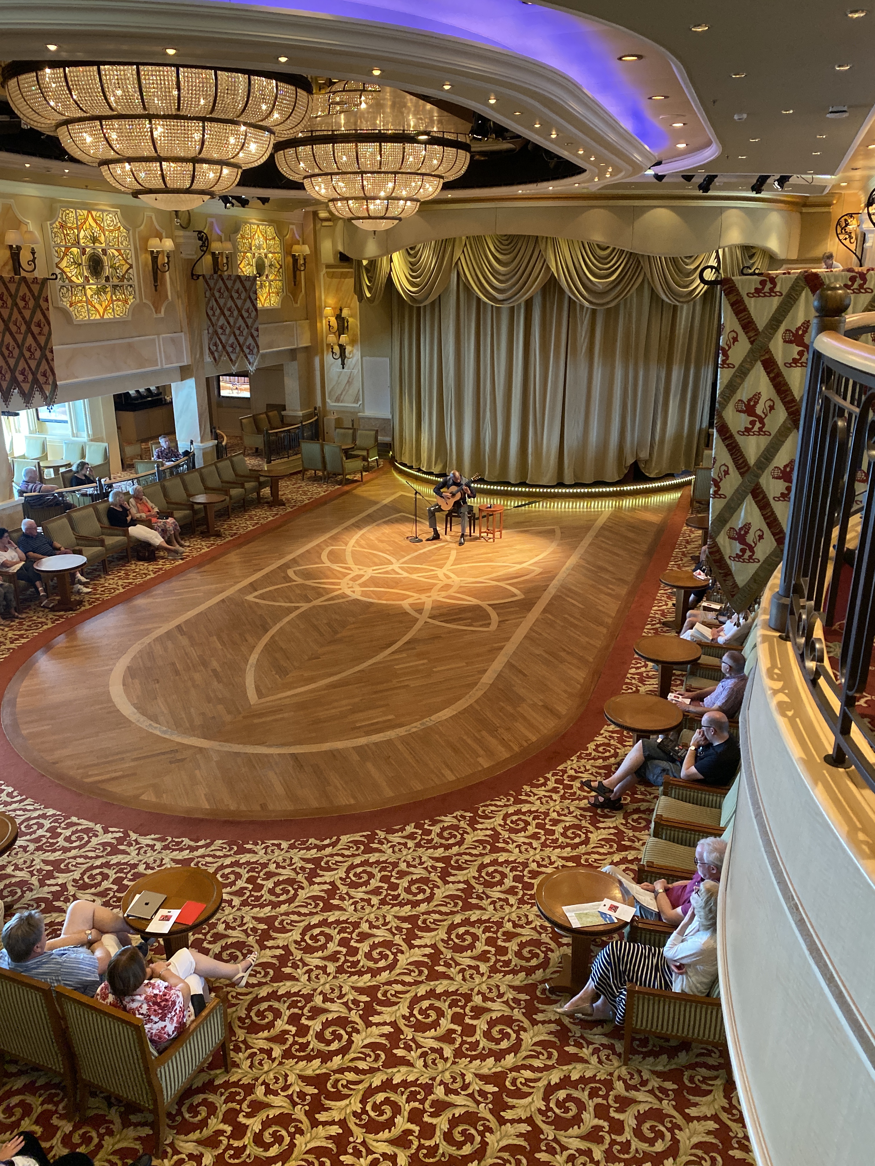 Cunards insight lectures commence for the day. A series of lectures delivered by an expert in their field. Head to the fabulous Royal Court Theatre to listen to fascinating General Sir Simon Mayall KBE CB discussing and explaining the βrise of Islamβ.