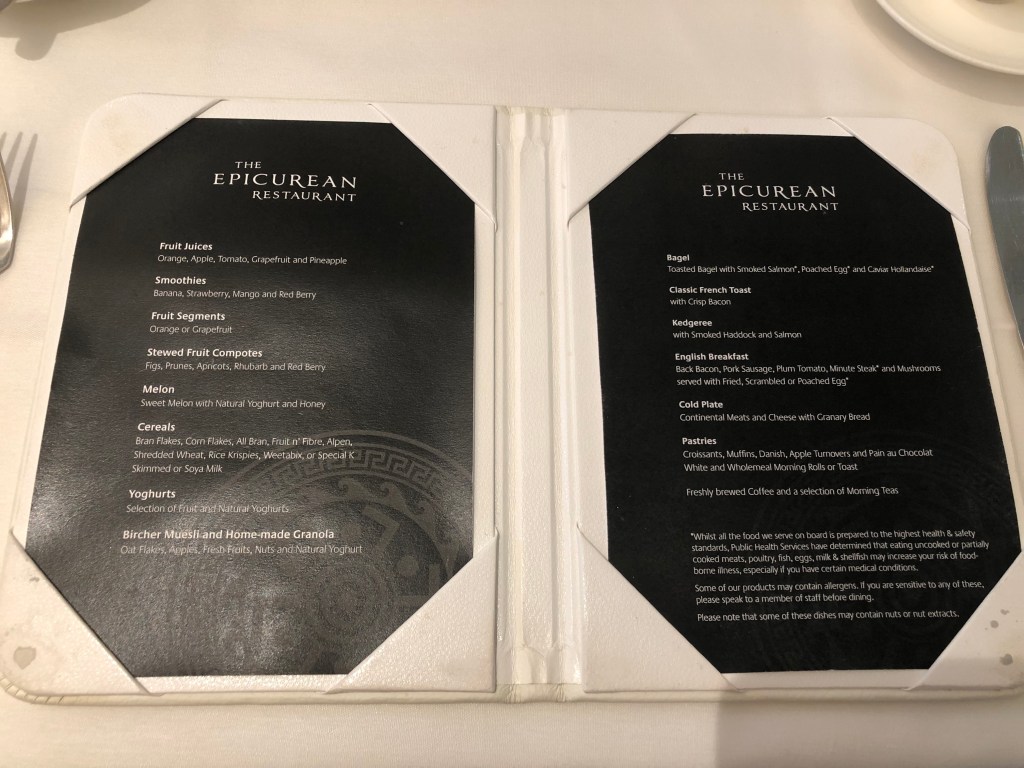5. Finally an option for suite passengers, you can head on up to the Epicurean restaurant and treat yourself to a delicious, luxurious start to the day served alongside a wonderful 16th floor forward view! Nothing is too much bother, service is impeccable and the special menu includes extra little treats to make your Suite experience just that little bit more magical.