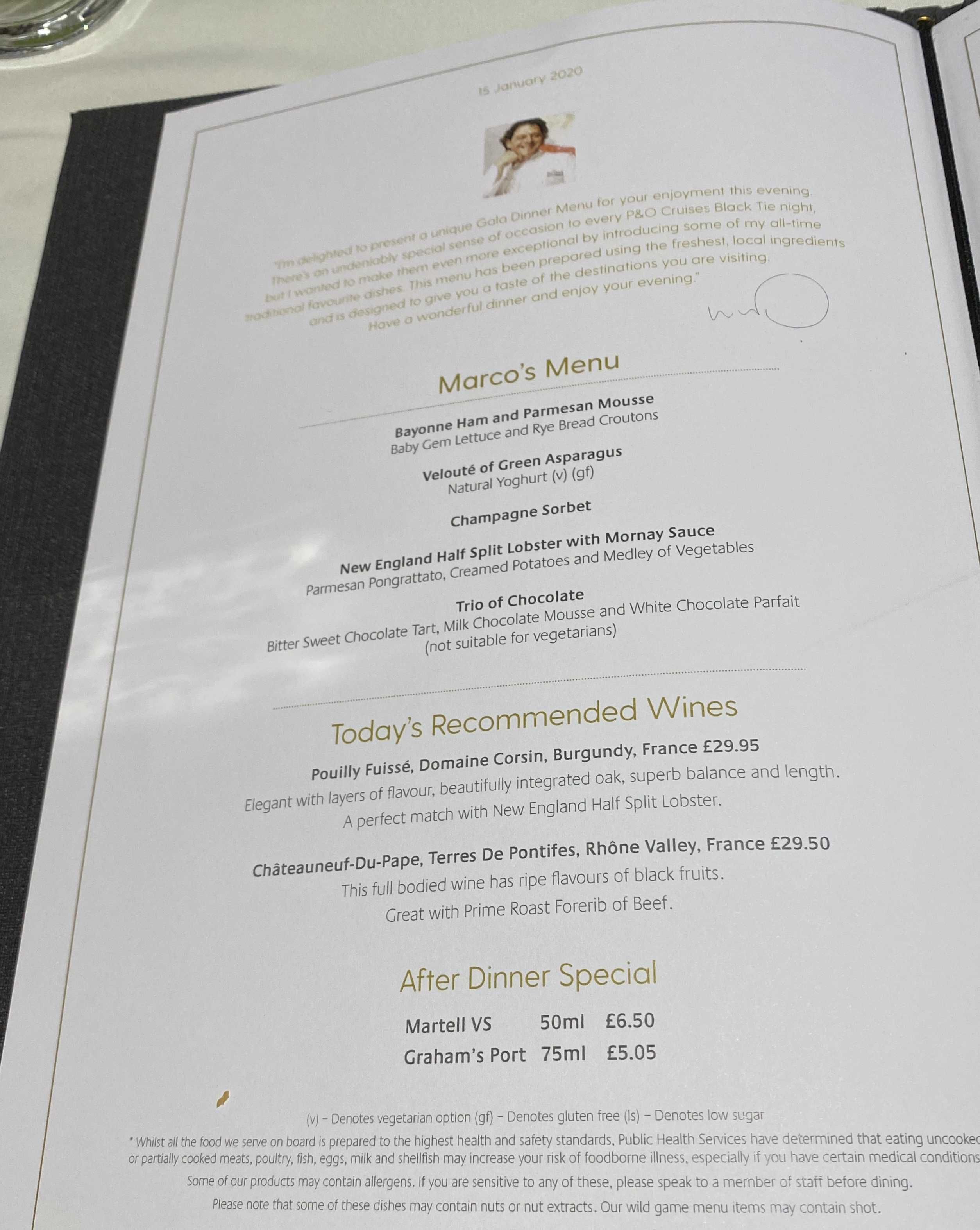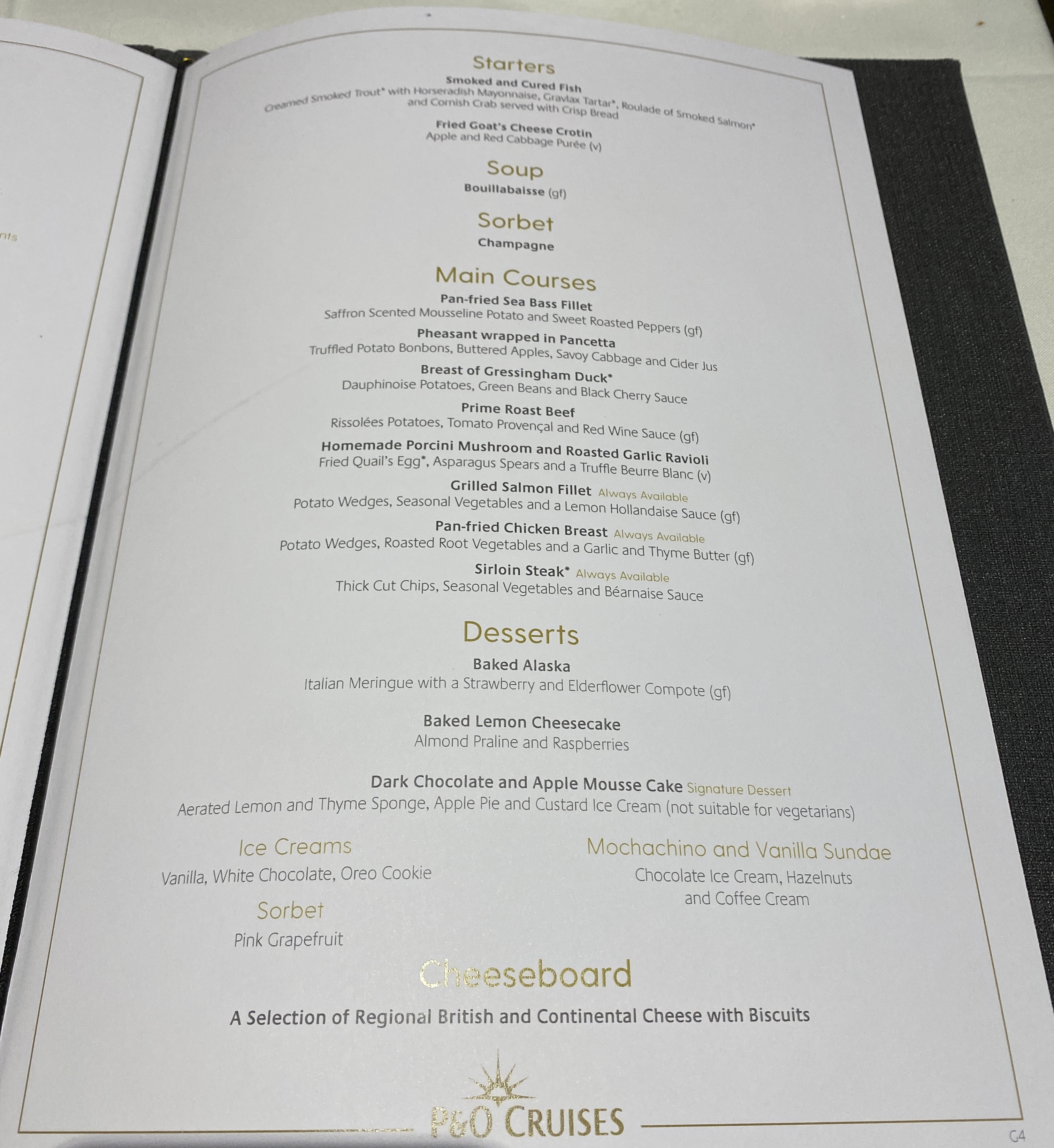 4. On formal nights menus may show a suggested menu from a chef such as Marco Pierre White, but donβt feel you have to stick to his suggestions. You can mix and match a combination of the suggested menu and the main menu to create your own personalised special menu!