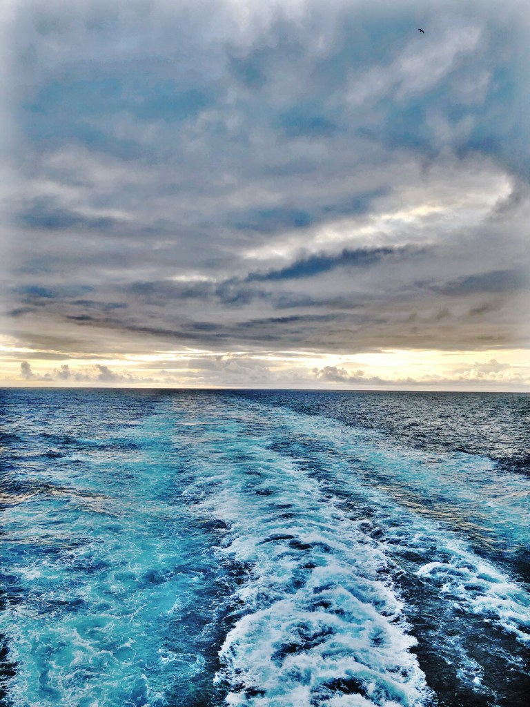 The quietness, the tranquility, the calmness. The ability to completely turn off, gaze out to nothing between you and the horizon and deeply breath in the fresh sea air. The relaxing noise of the gentle waves hitting the side of the ship, or occasionally marvel in the immense power of the force 12 waves crashing and banging against the side of the ship.