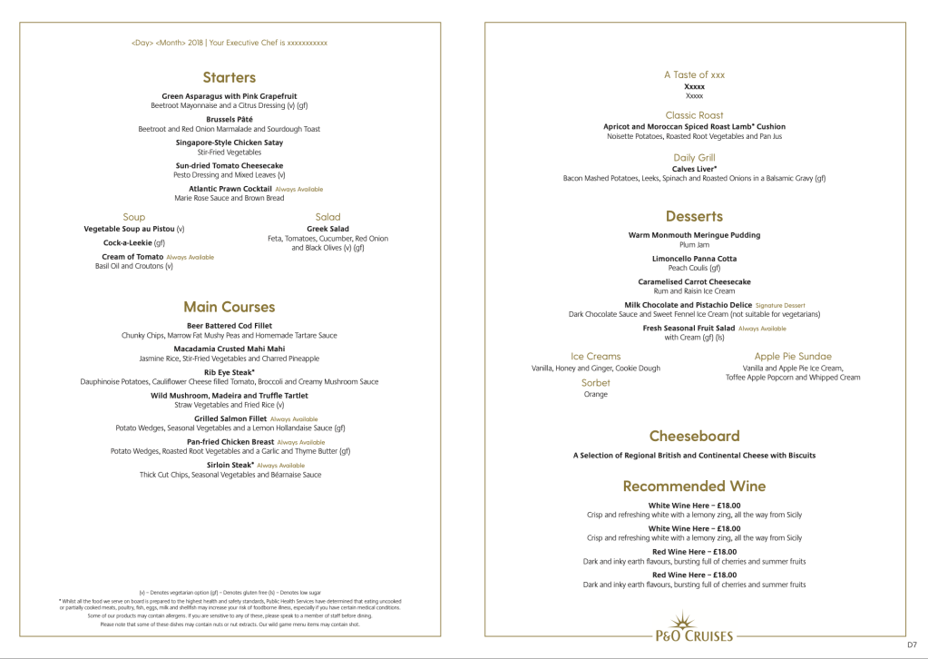 Youβre on a Britannia cruise, youβre starving (humour me) you fancy some dinner….