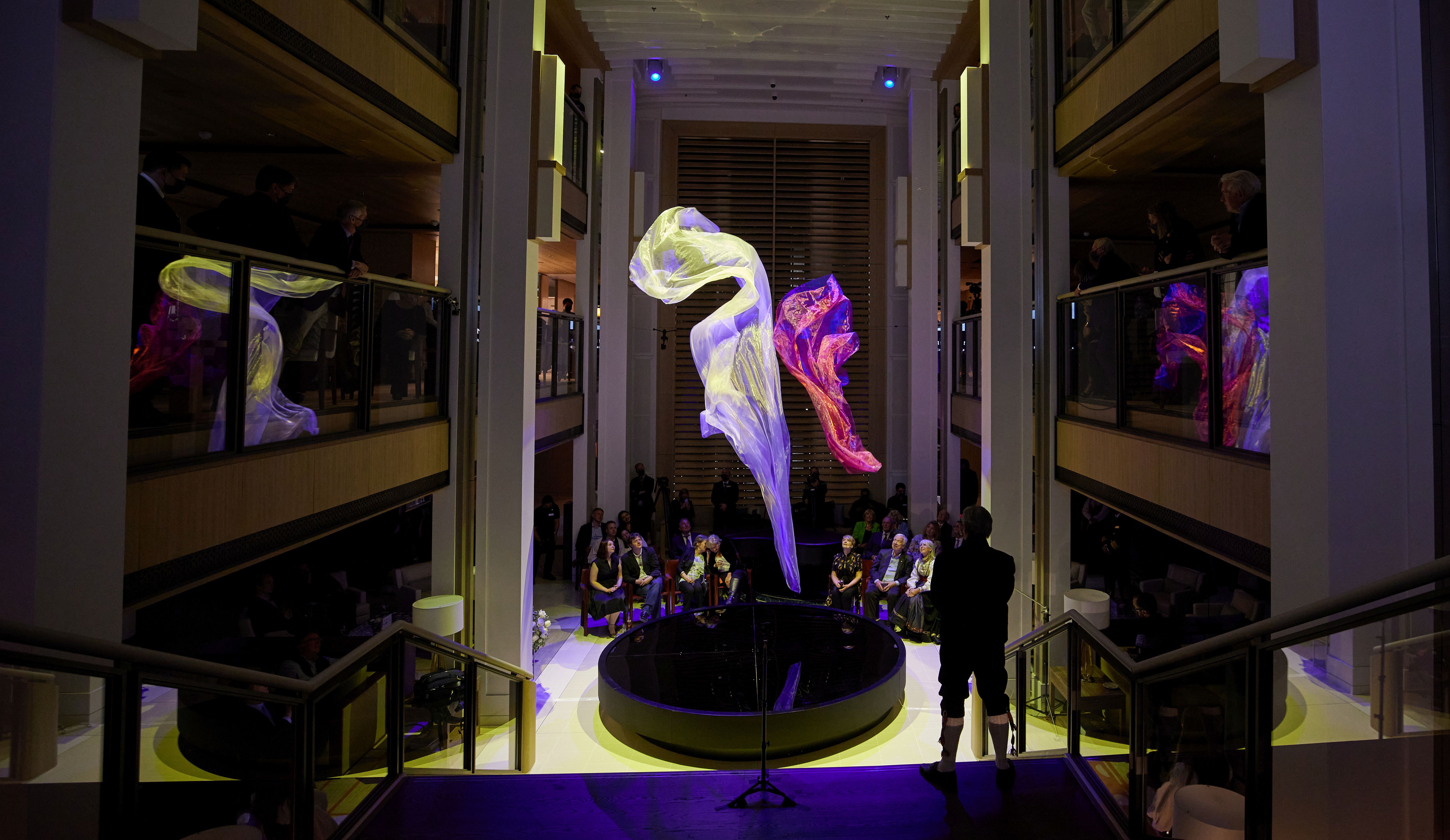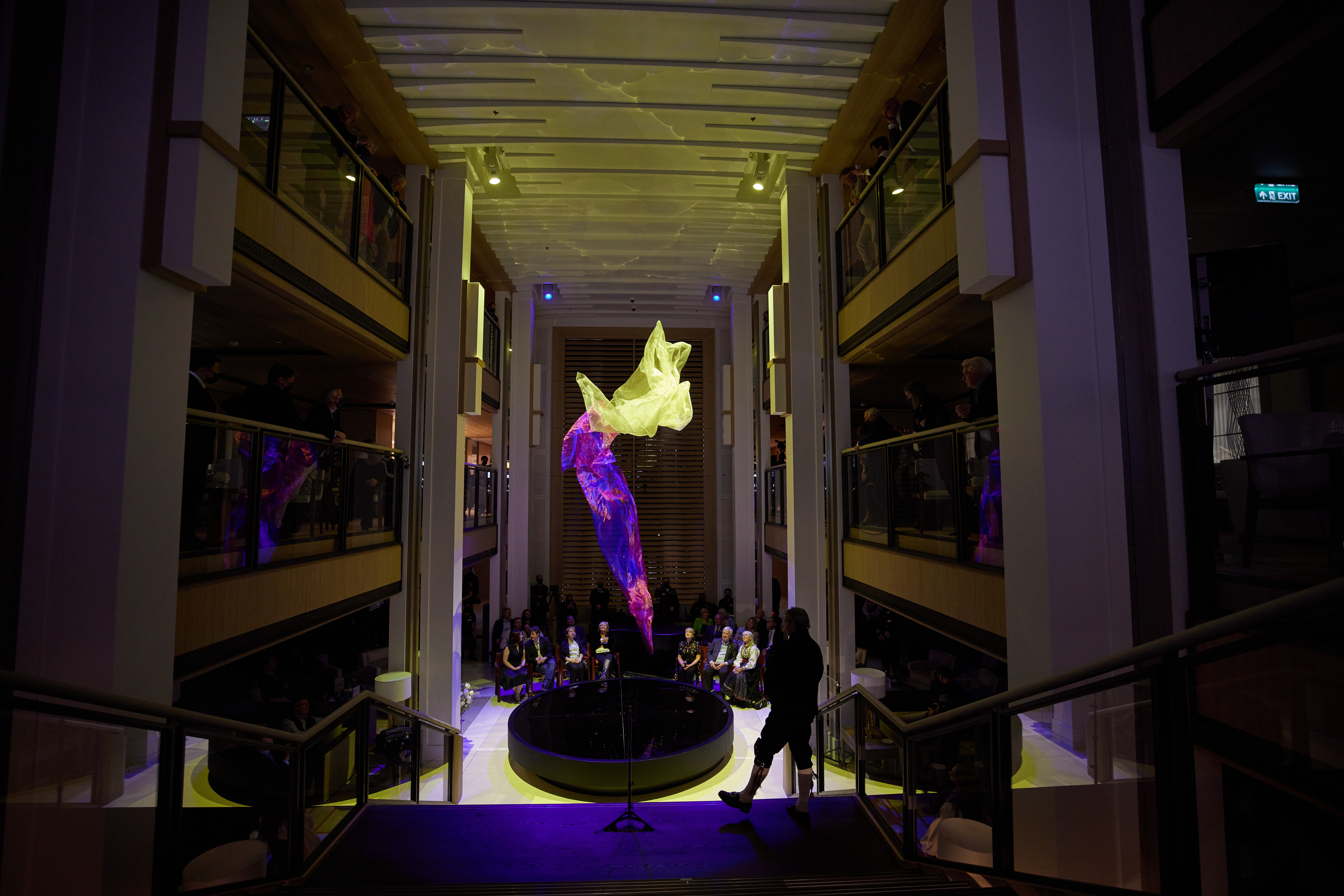 The event also honoured today, 17 May, as Norwegian Constitution Day and paid tribute to the Nordic spirit of exploration. Additionally, after speeches by Chairman Hagen and Anne, guests were treated to the unveiling of a custom “Air Fountain” by artist Daniel Wurtzel, which was specifically designed and installed in the ship’s Atrium for the event. Best known for his kinetic sculptures and installations using air and lightweight materials that fly, Wurtzel has shown his artworks at the Musée Rodin, the Grand Palais in Paris, the Tate Modern Turbine Hall and the Smithsonian National Portrait Gallery.