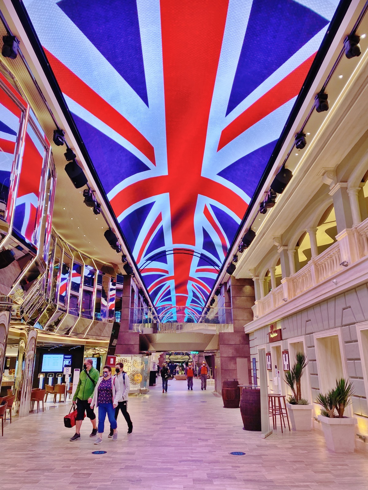 Usually able to accommodate over 6,000 guests, the 1,085ft-long ship is currently sailing with only 1,000 guests in accordance with government guidance.