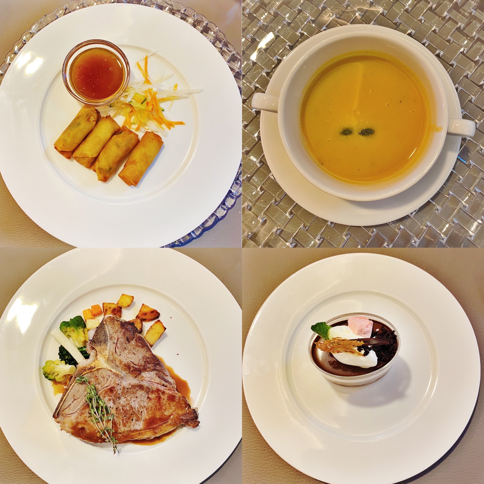 The Dinner service in the main dining room began at 19:00 until 21:00. A five course menu was offered, an appetizer, a soup course, a main course, a dessert and coffee or tea. It will come as no surprise, I love my food, the fancier the better! This food was absolutely scrumptious, presented so beautifully, like a work of art and served by the most fabulous waiters and waitresses. I do enjoy taking photographs of food, so let me add some of my favourites over the 5 nights here.