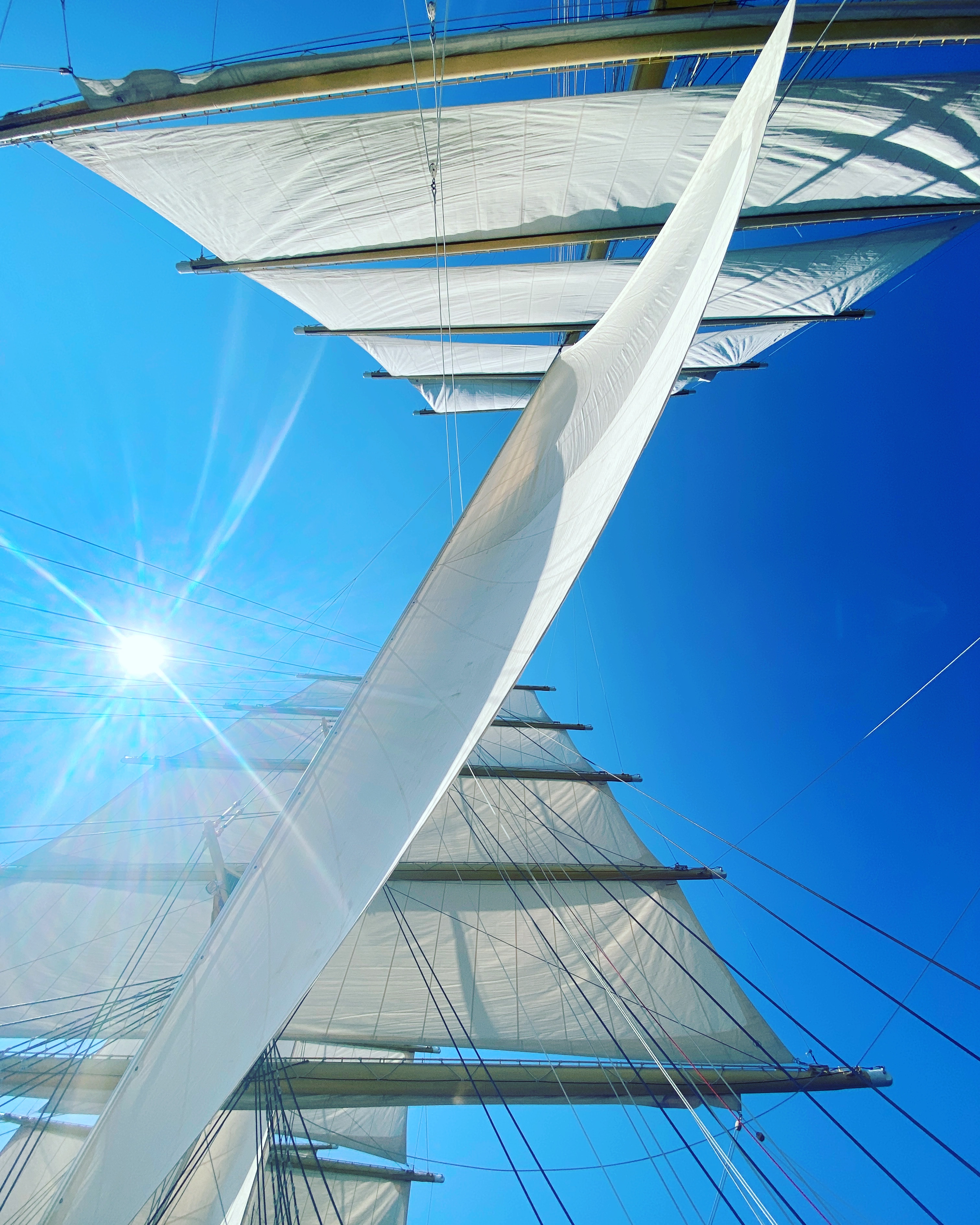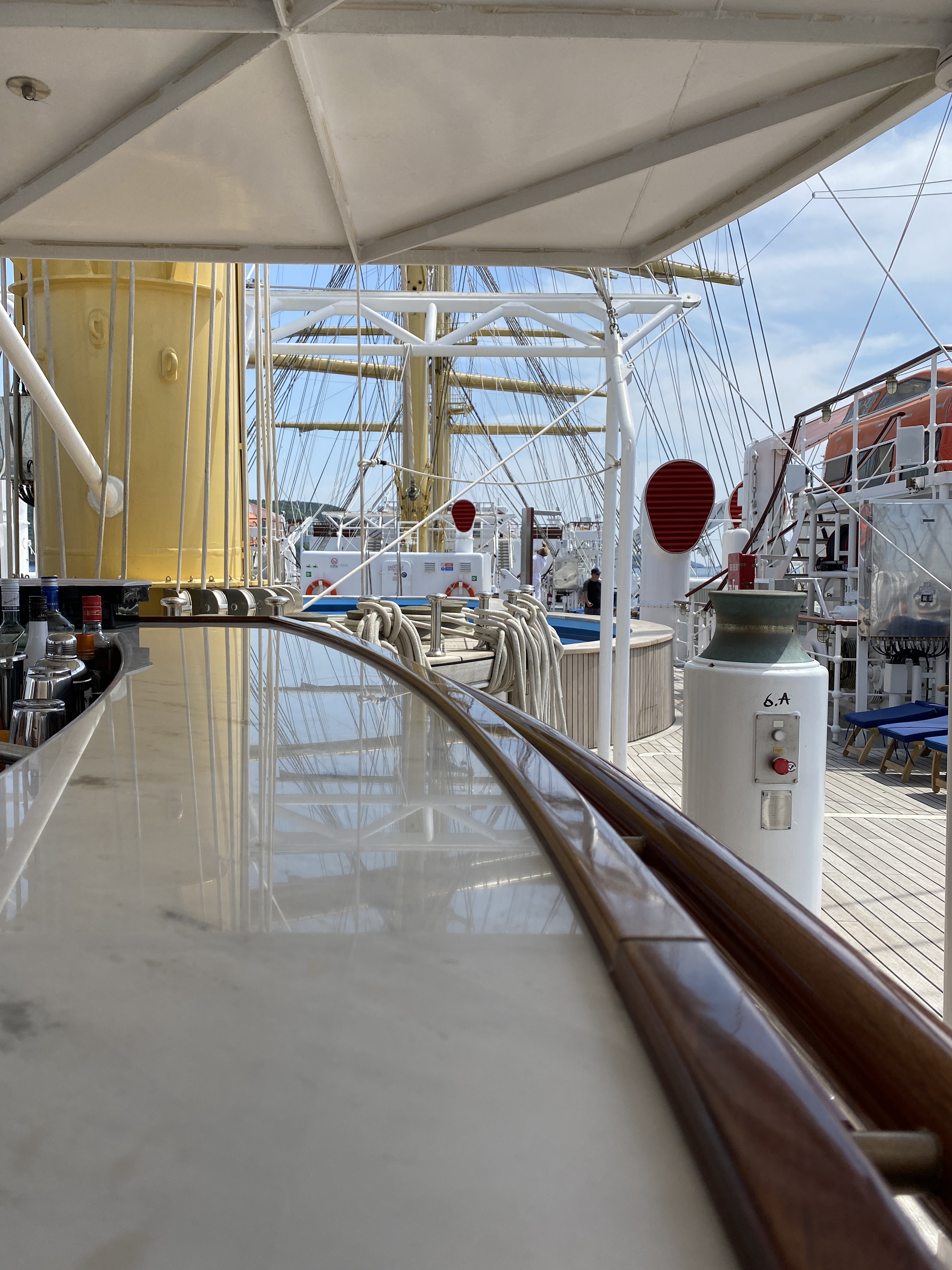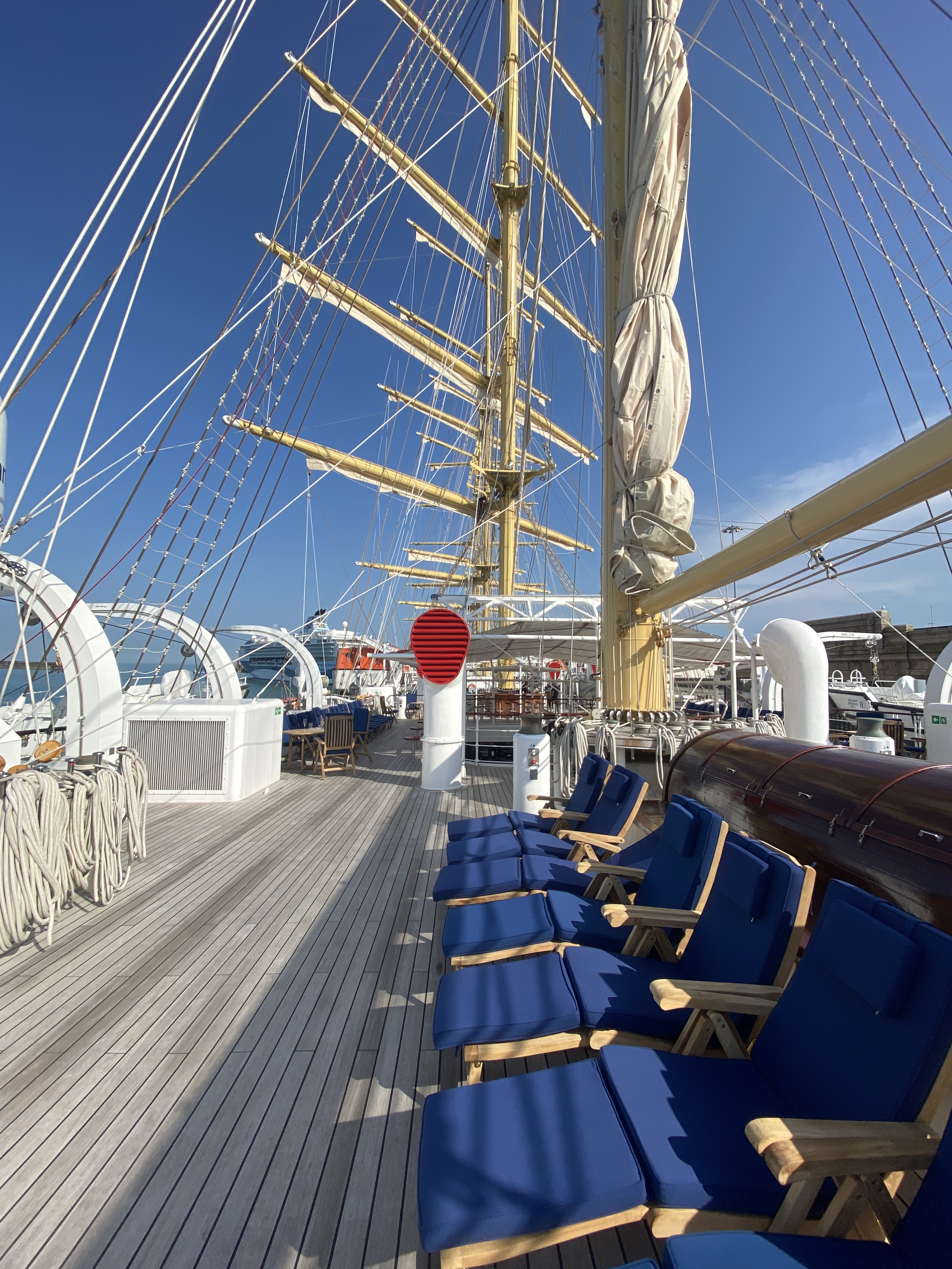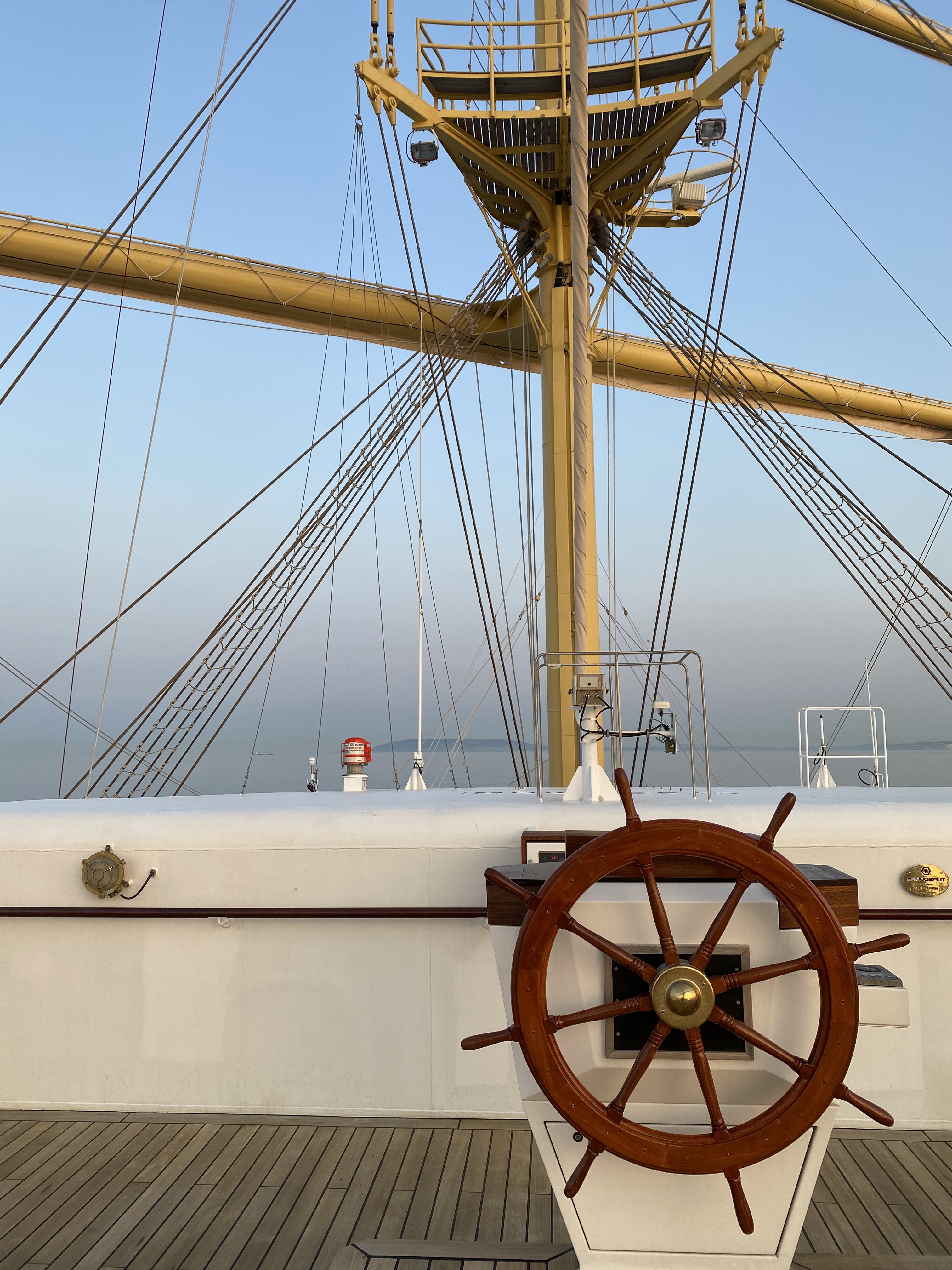 The highest deck for passengers aboard Golden Horizon is the compass deck. A lovely vantage point to admire the ship, to check out the bridge info display and check we are heading in the right direction with the compass. An operational ships wheel is located up here, perfect for the odd sailor selfie. A peaceful location used for both early morning rise and flow yoga classes and serene late afternoon relaxation sessions promising to relax both body and mind. To be fair I found the whole on board Tradewind experience massively relaxed both body and mind, the pre cruise experience less so , but the experience aboard is truely what matters and they absolutely delivered on their promise of an adventure like no other, βaboard a ship which perfectly marries rich sailing heritage and modern luxury with a sustainable twist.