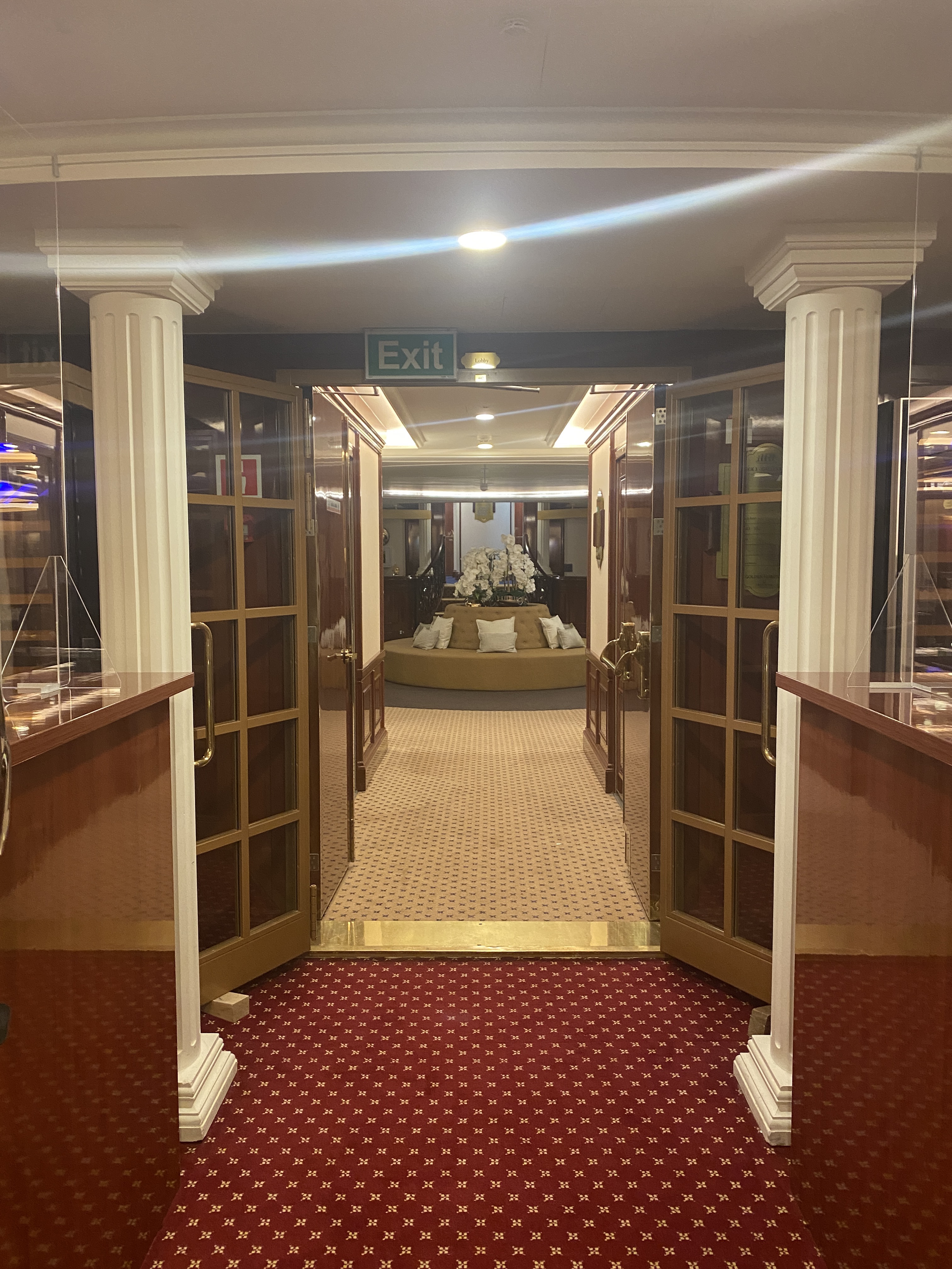 The final location on the Main deck, is the Quarterdeck bar. Given my love for a wake view, I was so looking forward to spending time at this bar. Sadly it seemed to have been changed to a crew bar during our voyage. I expect when running at full capacity of guests, they will need to change it back? It was the only disappointment of the ship, not being able to use the bar they advertised as for passengers.