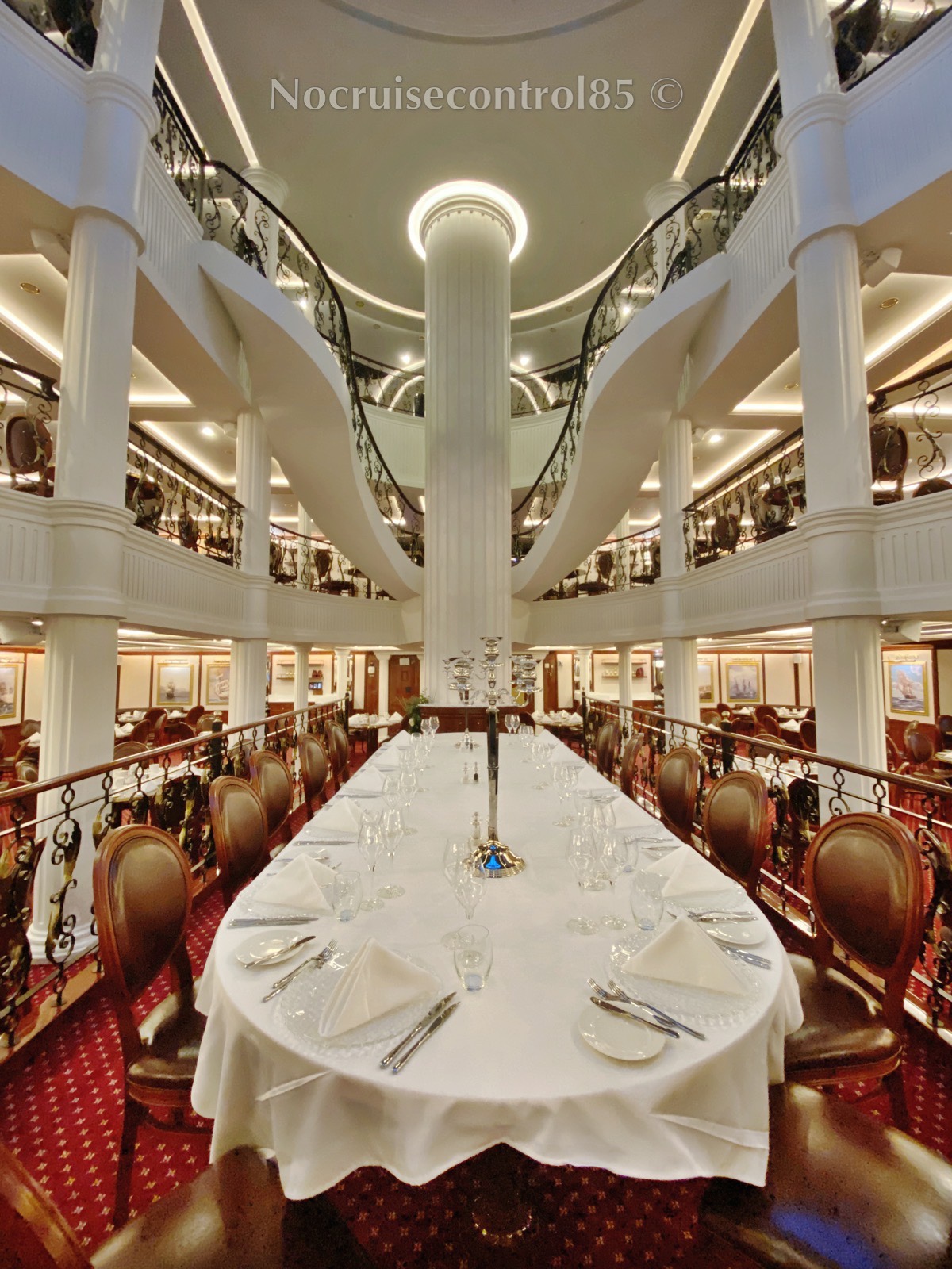The Marina deck also houses the lower floor of the Dining Room. A beautiful room complete with a large central captains table. During my Voyage I only noticed the BBC Travel crew aboard eat at this table. I expect on longer voyages guests will be invited to eat here, once restrictions are hopefully relaxed more in the future.