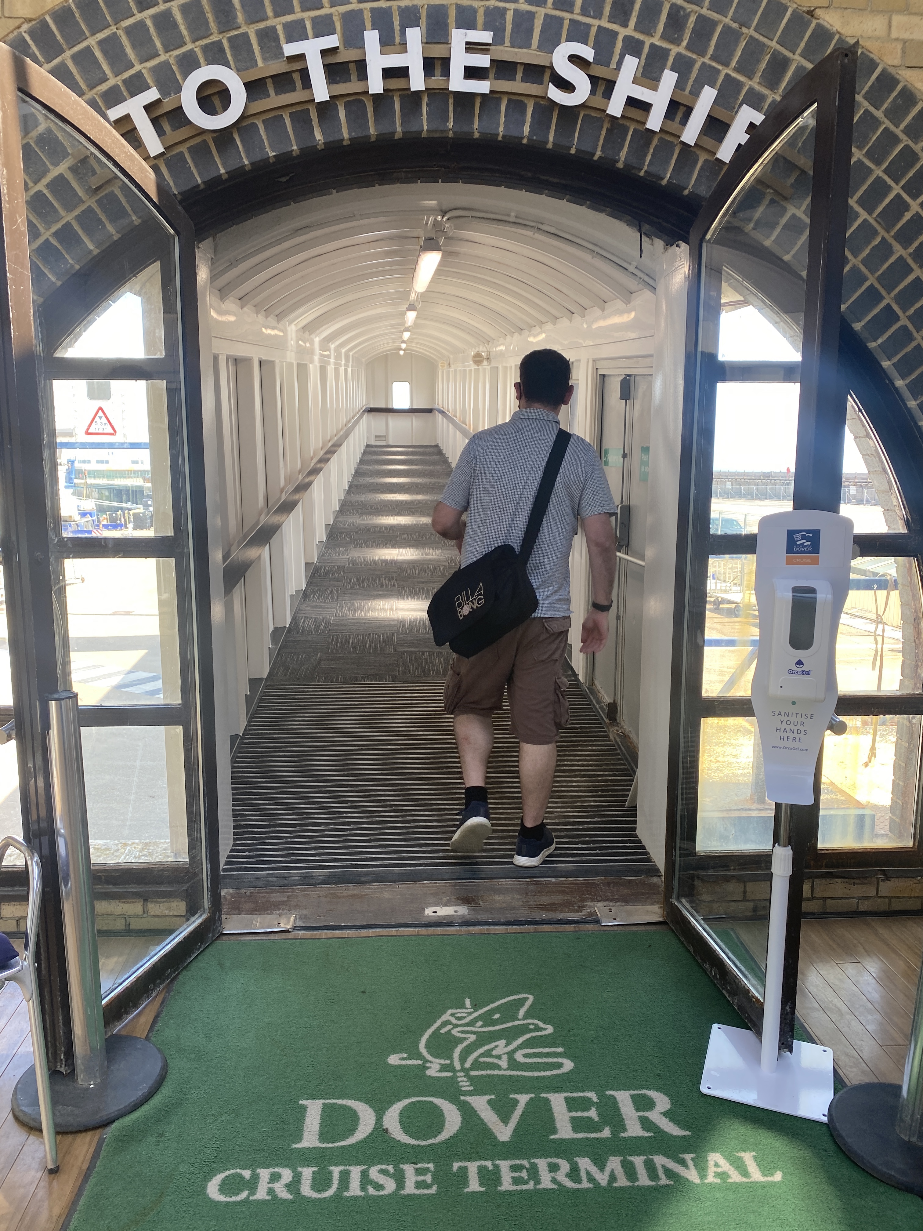 Our luggage was checked in at the front of a small terminal in Dover. Luggage tags were added to your cases, COVID negative stickers checked and you were ushered in through security, then straight up on the ship. We were then escorted to reception aboard and checked in and escorted to our Stateroom.