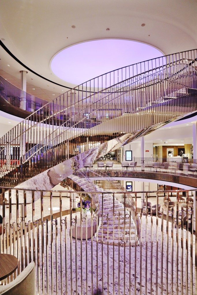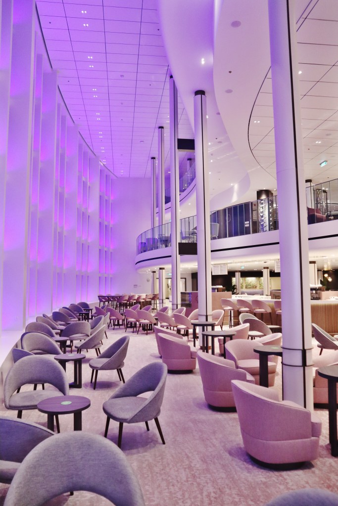 I think one of my favourite places aboard Iona, was her Grand Atrium. It is gorgeous and so well designed. Fantastic huge windows over three decks, showing off the view of the Ocean. So many places to sit and enjoy a sea view with a delicious cup of coffee, or maybe whilst enjoying the super scrumptious Prime Minister Burger at sea from the Keel and Cow!