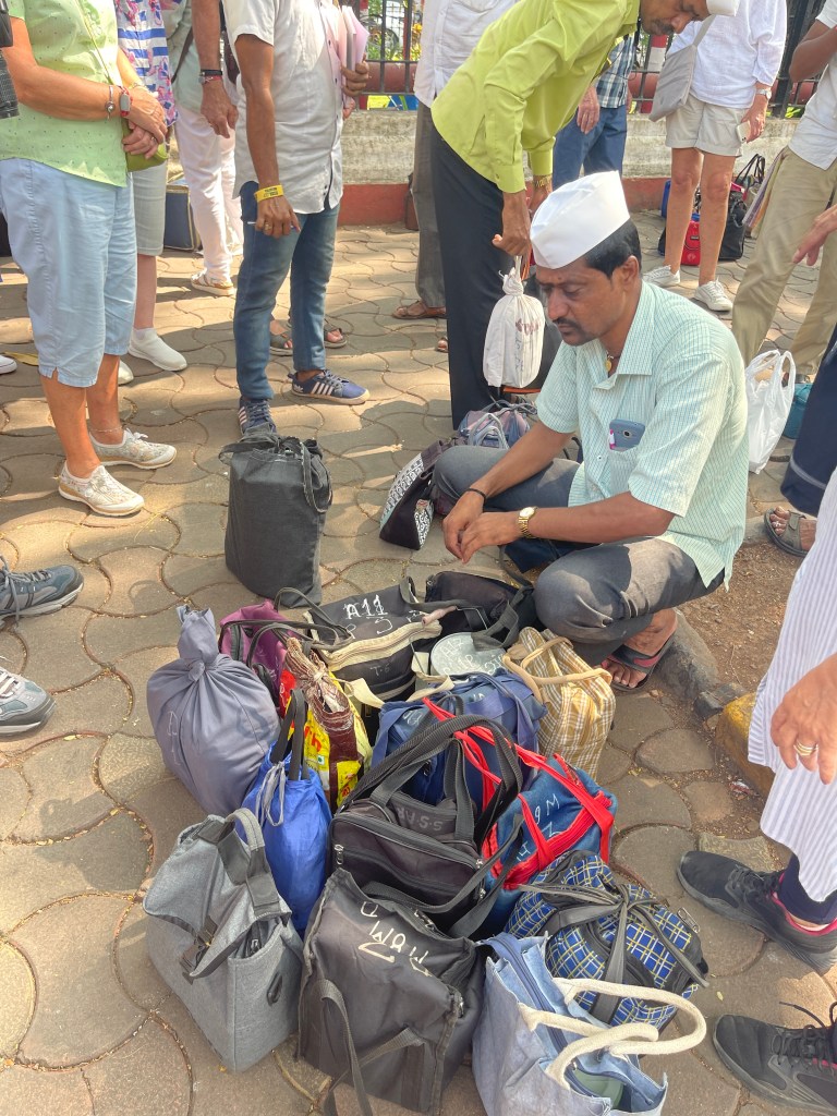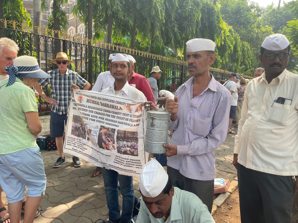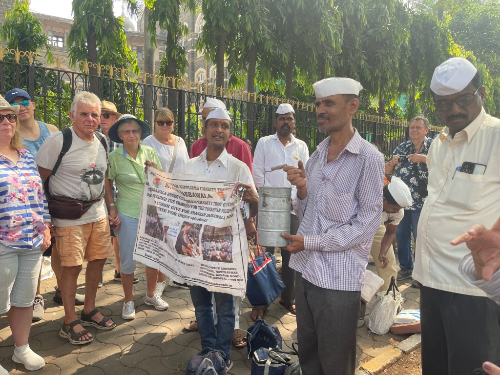 Our next stop outside Churchgate train station provided a glimpse into the intricate, amazing lunch delivery system of the Dabba Wallahs! A fascinating organization supporting Mumbaiโs workforce. I marvel at their efficiency, despite many carriers having limited literacy skills, relying on distinctive markings for coordination.