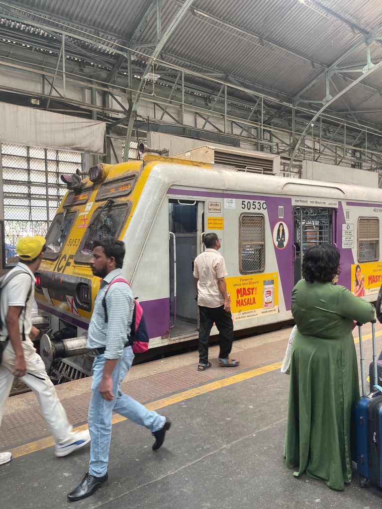 It was then time for our local Mumbai railway experience! We started the journey at Churchgate station, a bustling, hive of activity despite it being 11am! I canโt imagine how busy it must be at rush hour. We navigated through the various train carriages, ones for women only, ones for pensioners only, third, second and first class! Our guide led us to the first class carriage. All carriages had no doors, so we experienced quite the unique system of air-conditioning! I think our carriage was first class, because it had far more handles to hold onto and a couple of fans on the roof! Joking aside, it was a very enjoyable journey and Iโd love to explore India by train more!