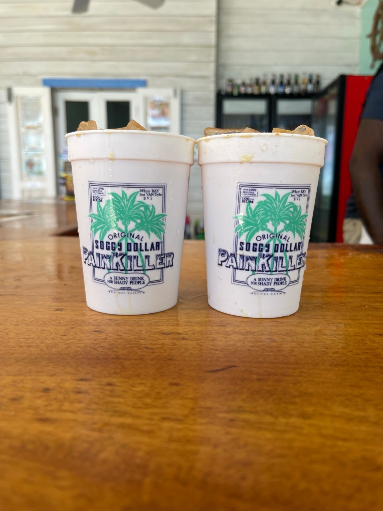 The Soggy Dollar Bar is famous for its Painkiller cocktails β a tropical blend of rum, pineapple juice, orange juice, and cream of coconut, topped with fresh nutmeg. Itβs the perfect drink to sip while you unwind on the beach, and the perfect way to cool off in paradise.
