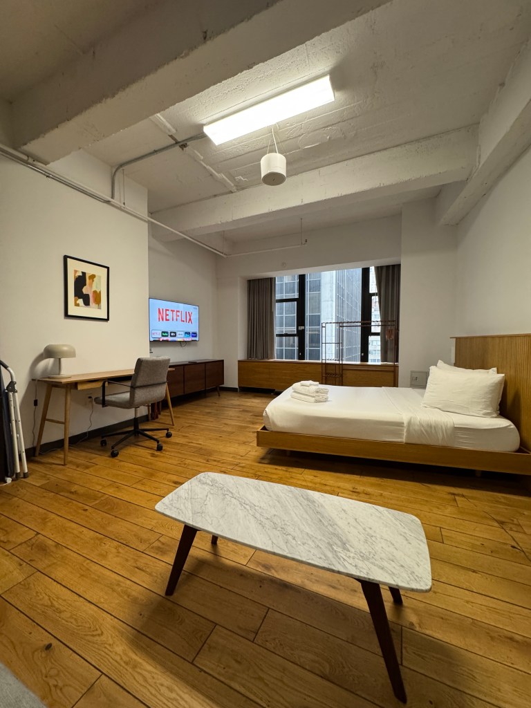 Unlike traditional hotel rooms, Placemakr offers studio and one-bedroom units equipped with kitchenettes, smart TVs, and dedicated workspaces. This setup is ideal for longer stays or travelers who prefer the option to cook and work comfortably.