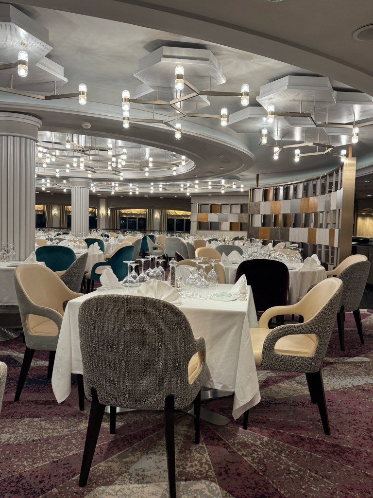 A signature favourite, this speciality restaurant features Japanese-Peruvian fusion cuisine curated by world-renowned chef Nobu. From black cod miso to exquisite sushi, itβs a must-visit (and included in the fare, with one complimentary dinner per cruise).