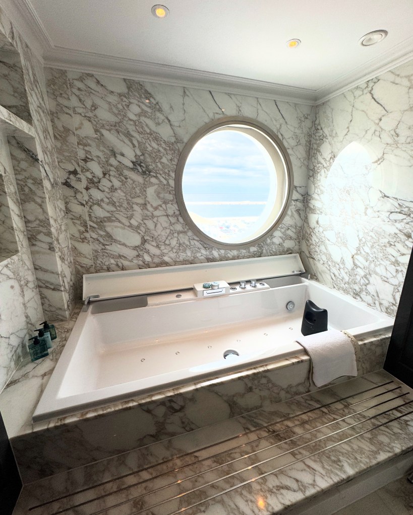 Every stateroom on Crystalβs ships is now a suiteβand theyβre all generously sized. Mine had a proper walk-in wardrobe, a large marble bathroom with double sinks, and a balcony perfect for watching the world go by. The bed was heavenly, the storage was plentiful, and the attention to detailβfrom binoculars in the daily afternoon canapΓ©s βreally impressed me.
